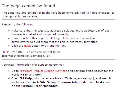 - A clear statement that the page the user requested isn’t available